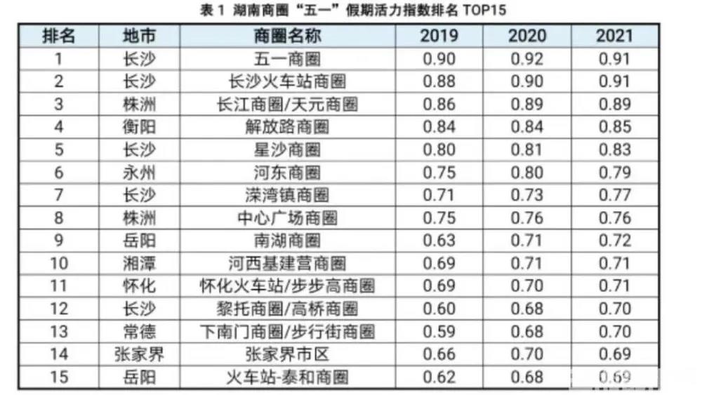 商圈電量活力指數(shù)顯示,長沙攜4個商圈入圍全省商圈活力榜前十,“五一”商圈穩(wěn)居榜首,長沙火車站商圈與星沙商圈緊隨其后。