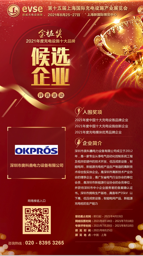 深圳奧科鑫入圍2021年度中國(guó)十大充電設(shè)備品牌企業(yè)